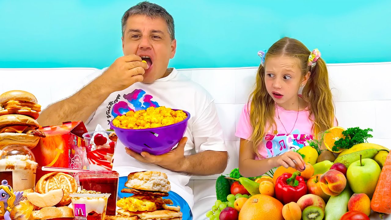 Nastya and dad buy healthy food for children and the whole family